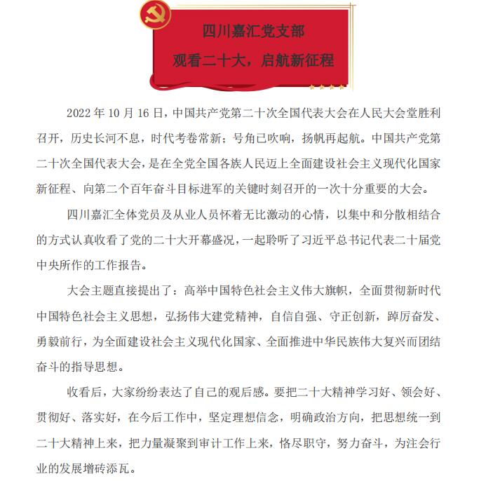 四川嘉匯黨支部“觀看二十大,啟航新征程”