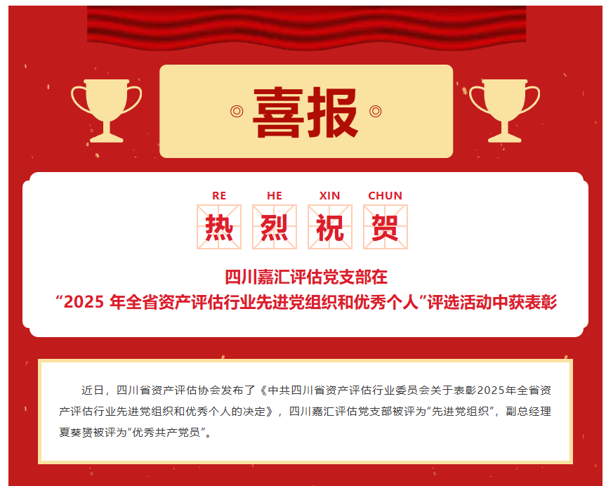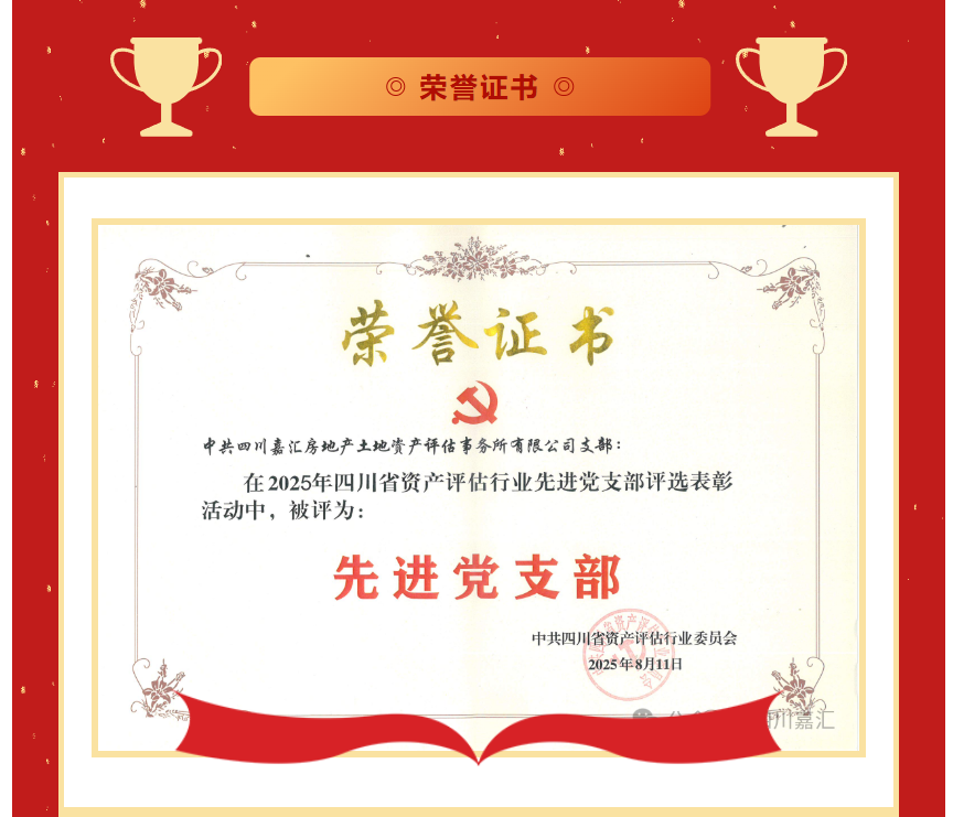 喜報||嘉匯評估黨支部在 “2025 年全省資產(chǎn)評估行業(yè)先進黨組織和優(yōu)秀個人”評選活動中獲表彰