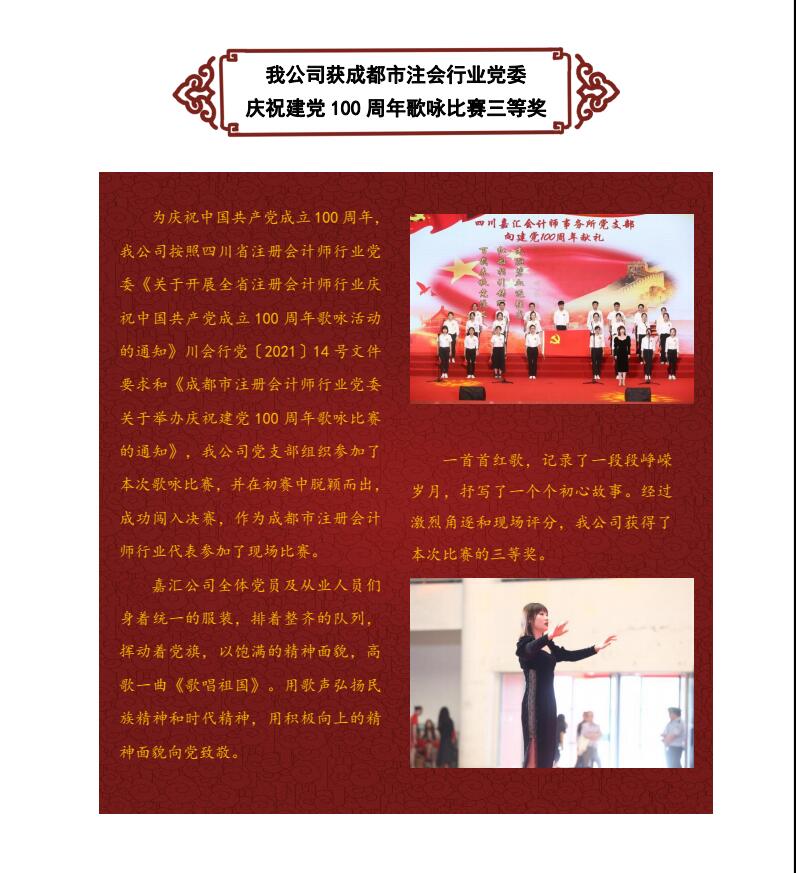 我公司黨支部獲成都市注會(huì)行業(yè)黨委慶祝建黨100周年歌詠比賽三等獎(jiǎng)