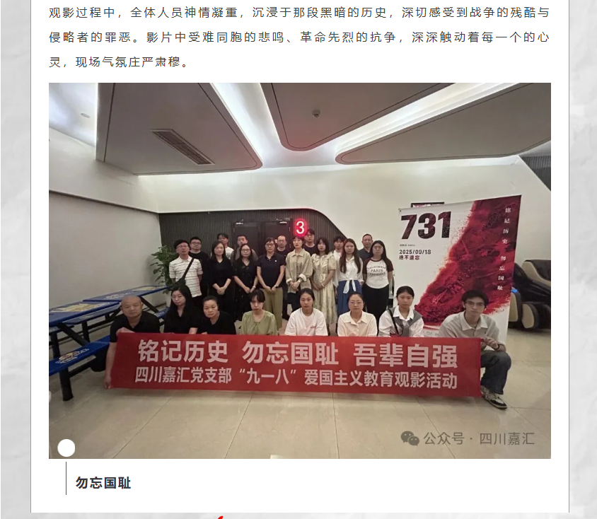 嘉匯黨建|| 嘉匯黨支部開展“銘記歷史 勿忘國(guó)恥 吾輩自強(qiáng)”紀(jì)念九一八愛(ài)國(guó)教育觀影活動(dòng)